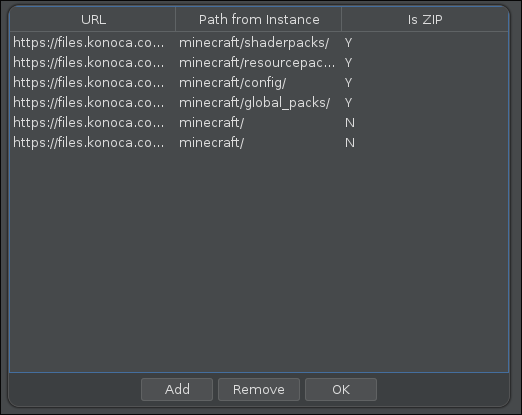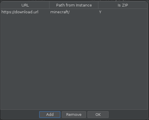 If you want to add additional files to download (such as configs), you can click “Add URLs” and add the direct download URL and where to download the file. If the file is a zip file, you can set “Is ZIP” to “Y”, or “N” if it isn’t.
