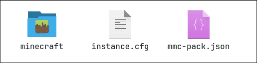 In Prism, click “Folder” on the right-hand side to open the root folder for the instance. You should see these folders / files (minecraft could also be .minecraft):