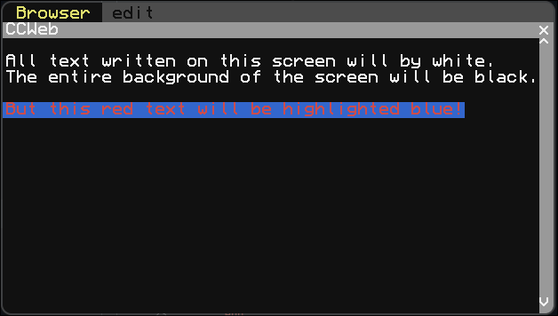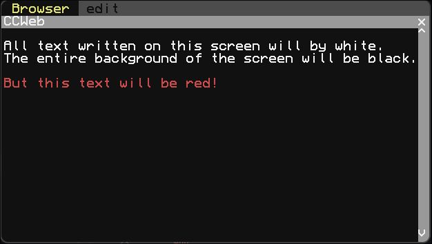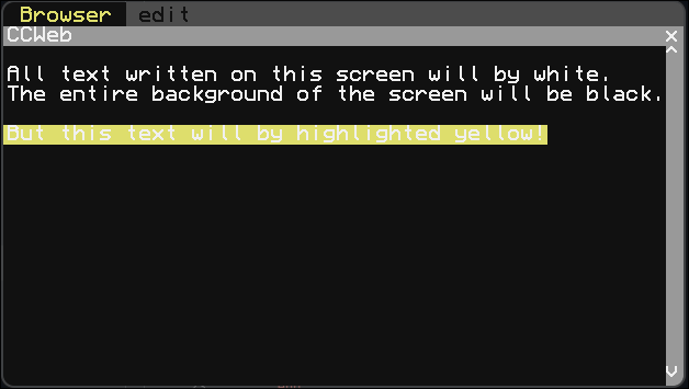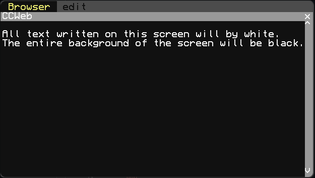 CCWeb allows users to create GUIs on ComputerCraft computers using a custom text parser that automatically handles a variety of the built-in graphics options. Additionally, users can provide a Lua file that can add functionality, kind of like HTML and JavaScript. This custom text parser accepts a custom TEX-based input, that automatically converts into the associated render functions.