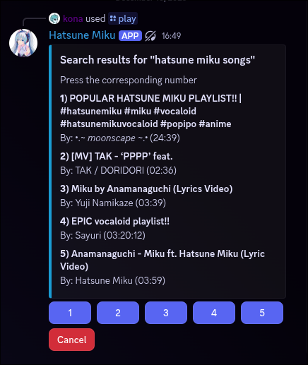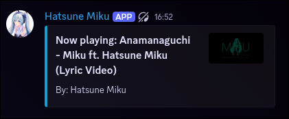 MikuBot, named after the popular musical instrument and character Hatsune Miku, is a Discord bot I created to solve a simple problem: how can a group of friends listen to music easily in a Discord call?